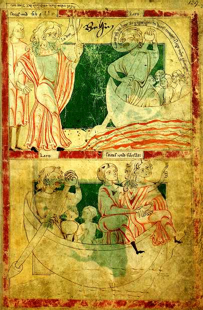 23r. unten: Charon setzt Eneas und die Sibylle über den Unterweltfluß